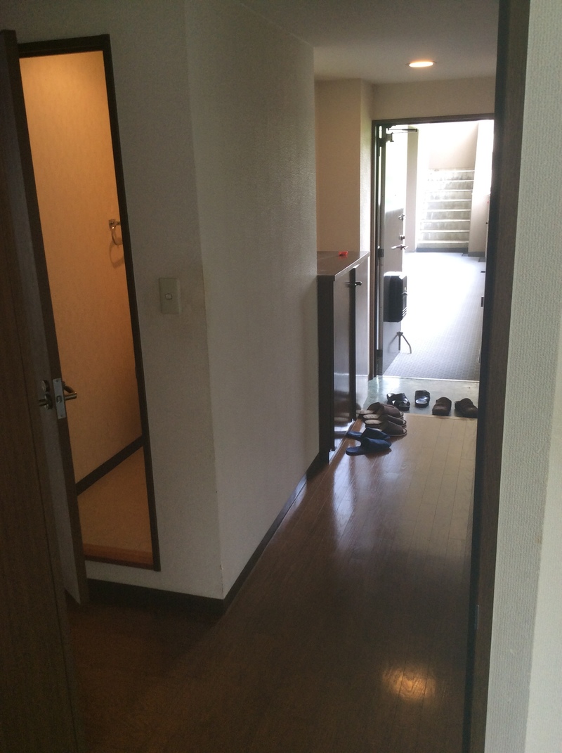 玄関に向かって。